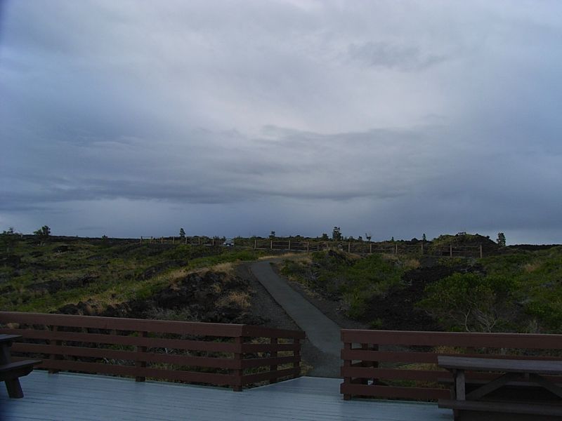 さて、まだ続きますよ・・・なのですが、これから先どの道をどう行ったのかさっぱり判りません。多分来た道を戻ってチェーンオブクレーターロードに入っていったんだと思うのですが、そこからマウナウルトレイルにいったのかな?ここではラヴァツリーを見たりペレの涙とペレの髪も見る事が出来ました(カメラ持ってくの忘れたので写真がないの~)。ここを歩く時も笑いが出てくるくらい雨風が凄く(油断するとラッパ傘になるし)、でもへこたれることなく歩いてたら目的地に着いた頃に雨やみました。