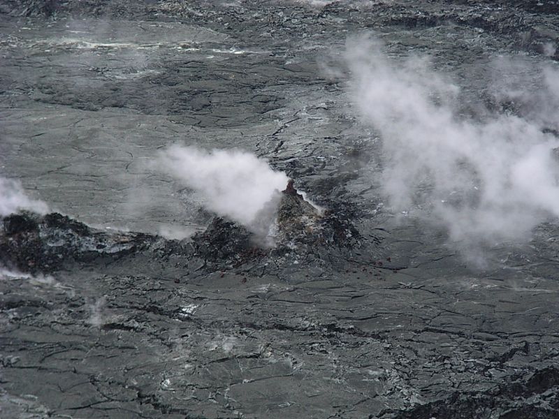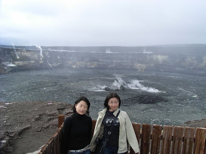 キラウエア火山にはペレという女性の神様がいるそうです。彼女が怒ると噴火するといわれています。雨が降り出したので、キラウエアビジターセンター(ボルケーノアートセンター?良く憶えてない)は車の中から軽く説明。続いてスチームベント(Steam Vents)。名前の通り蒸気が出ているところで、そんなに硫黄臭くないね~って言いつつ蒸気口を覗き込もうとしたら