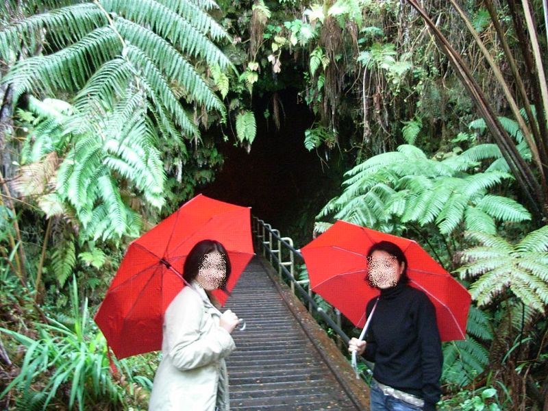 まだまだ見どころ一杯です。続いて行ったのはサーストンラバチューブ、溶岩の流れが外側から固まって行って出来上がった洞窟です。ここはスピリチュアルカウンセラーの江原さんが『オーラが見え易い』とおっしゃった所でもあります。ここドコ?っていうくらいうっそうと茂るジャングルの中に洞窟の入り口はあります。