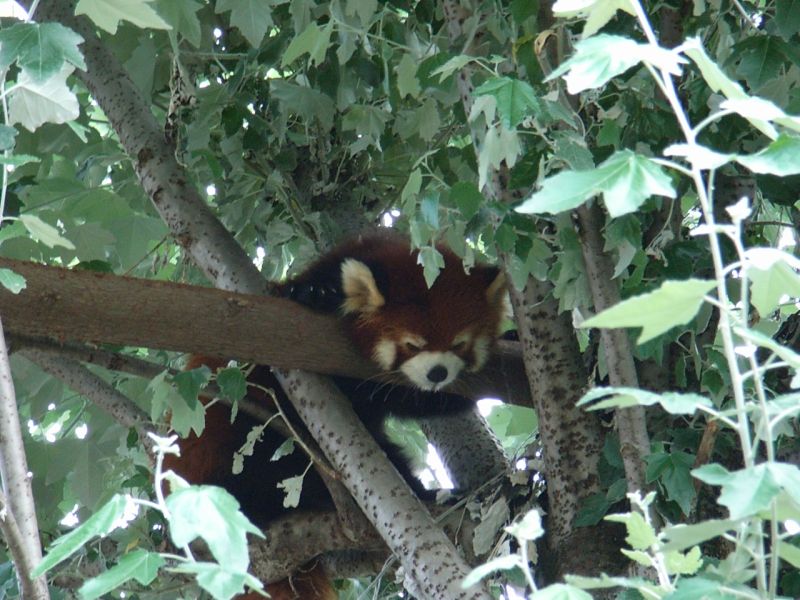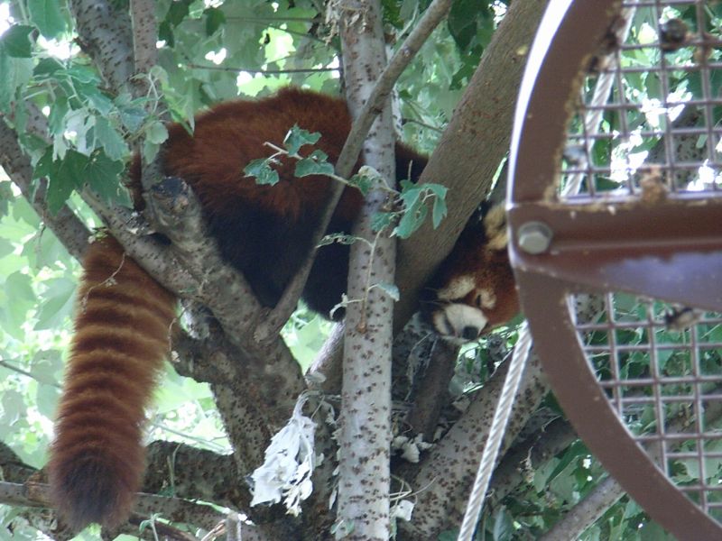 帰りながら気になったところを見てという感じで、まずはレッサーパンダ。パンダの檻から檻の外にある木につり橋がかけられてて、皆さんその木を一生懸命見上げています。なんだ?と思って見てみると